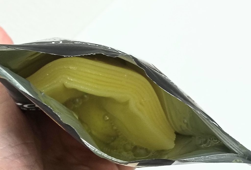 ほのかな柑橘系の香りがする黄色のマスクです。着色料は入っていないので、黄色は成分そのものの色だと思われます。